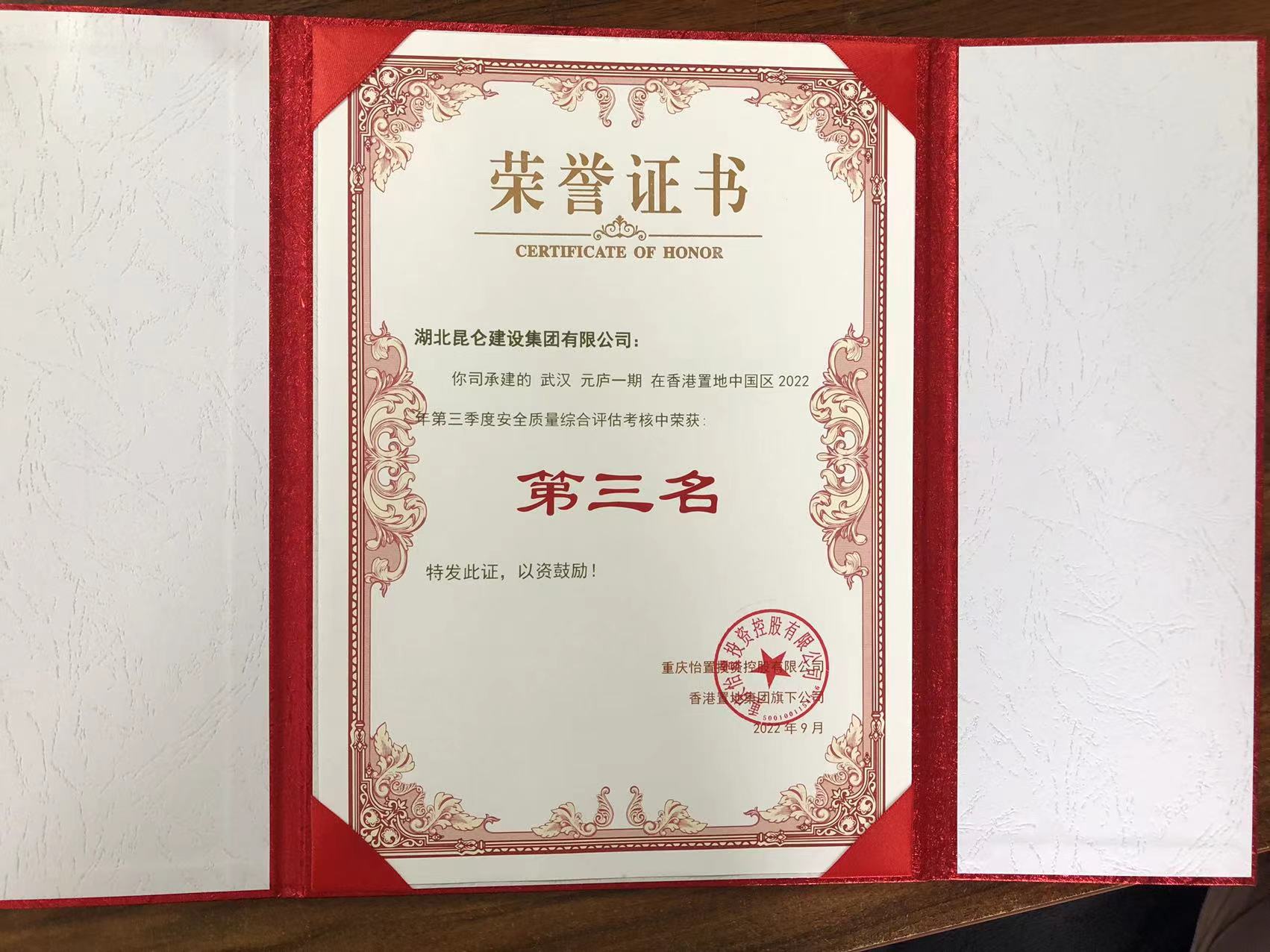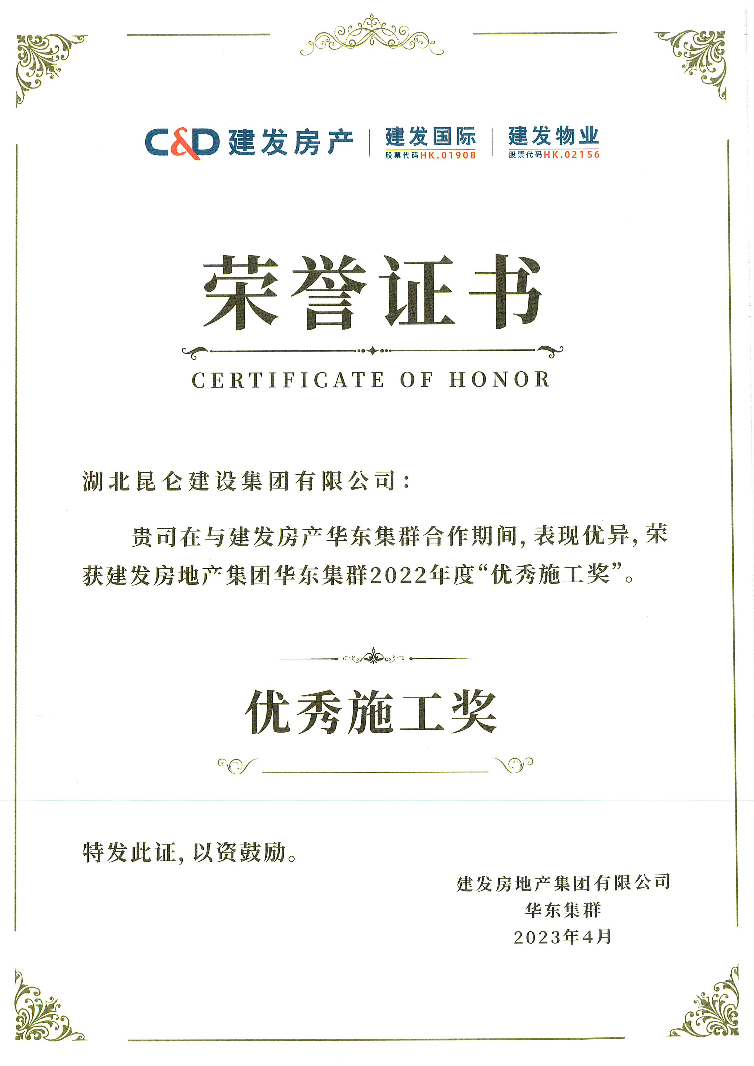 建發(fā)集團2022年度優(yōu)秀施工獎